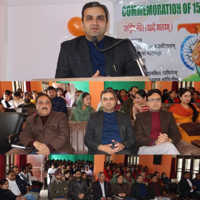Addressing the gathering, the Deputy Commissioner highlighted the enduring significance of ‘Vande Mataram’ in India’s freedom struggle and its continued relevance in inspiring citizens toward nation-building. He emphasized that the 150th anniversary is not just a celebration, but a reminder of the values of sacrifice, unity and devotion to the motherland. He encouraged youth to draw motivation from the song’s message and contribute positively to society.