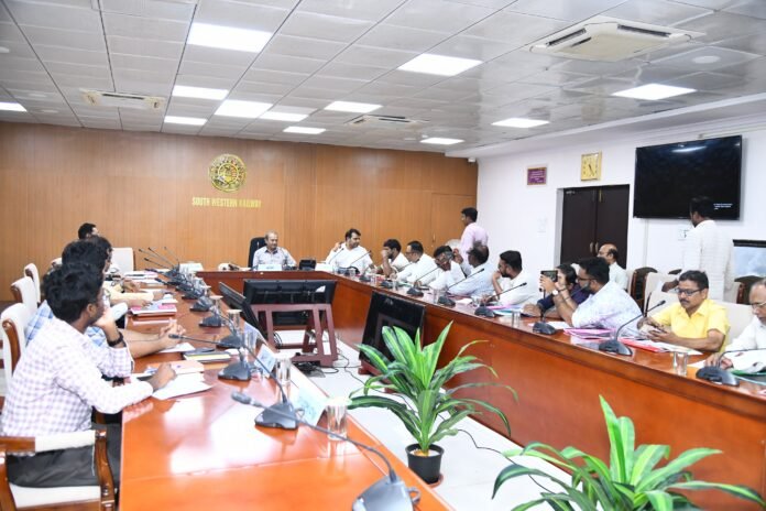 Additional General Manager P. Ananth addressed the media today on SWR’s performance in FY 2025–26, outlining record originating freight revenue of Rs. 5,347 crore and gross revenue of Rs. 9,488 crore, along with steady growth in passenger earnings and traffic. The zone registered a robust 14.9% increase in freight loading, driven by higher movement of iron ore, steel, coal, and raw materials. Key operational achievements included a record loading of 31 finished steel rakes in a single day, while continued progress in electrification, new line commissioning, and doubling works further strengthened capacity and connectivity. These achievements reaffirm SWR’s commitment to sustained growth and operational excellence. Senior officers of SWR and media representatives were present on the occasion