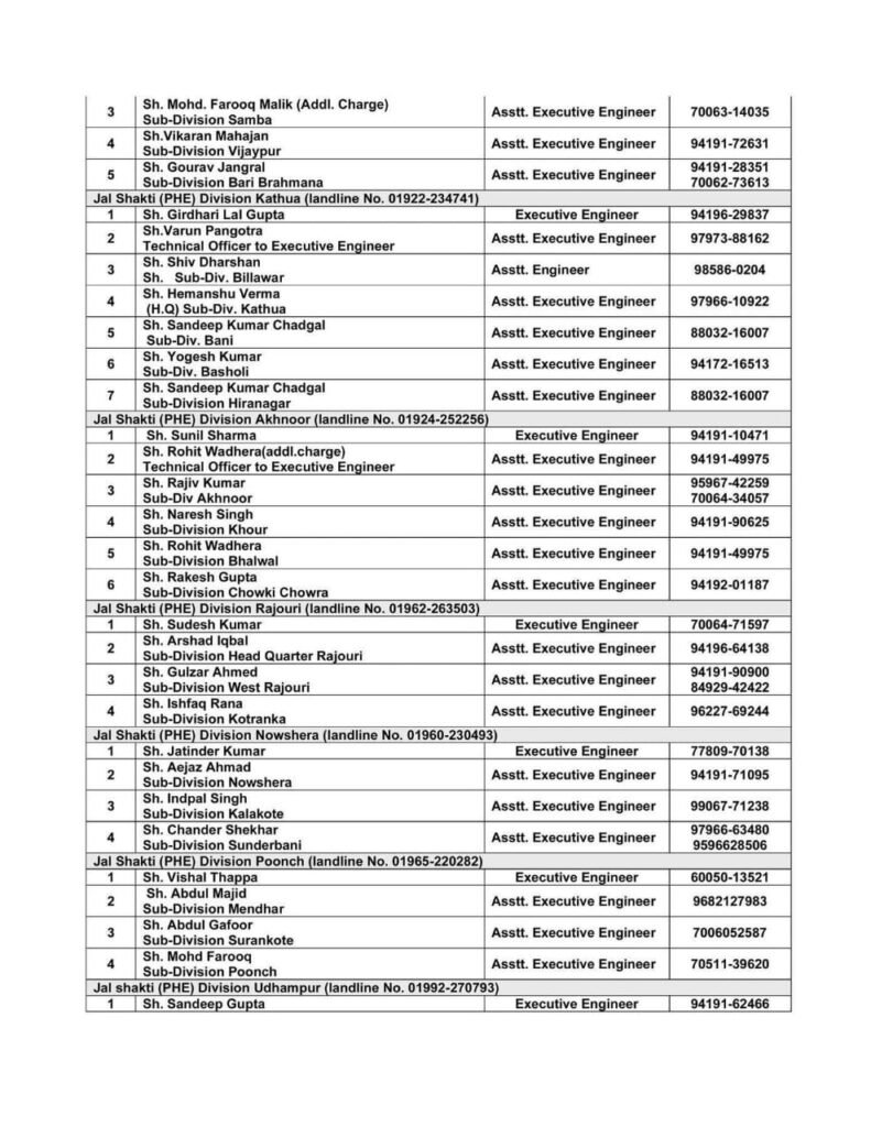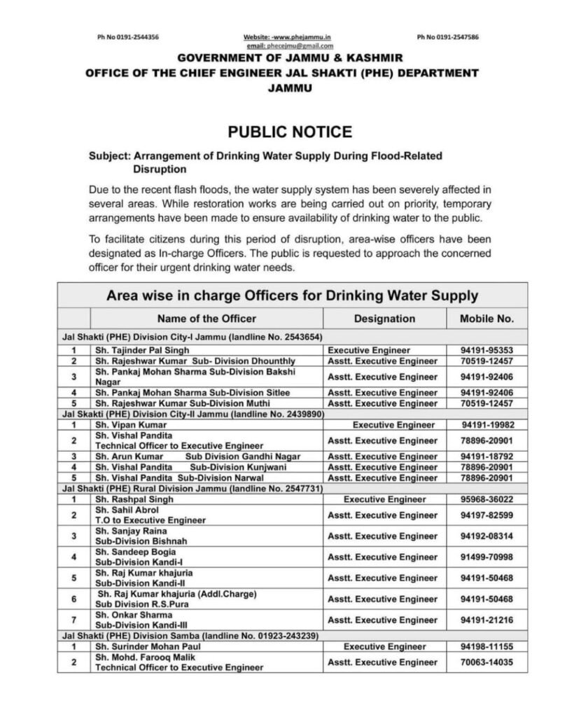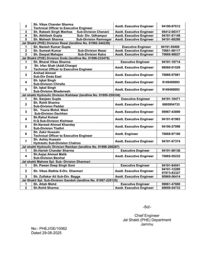 OFFICE OF THE CHIEF ENGINEER JAL SHAKTI (PHE) DEPARTMENT JAMMU.)