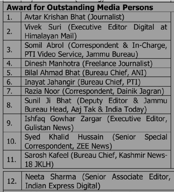 Award for Outstanding Media Persons