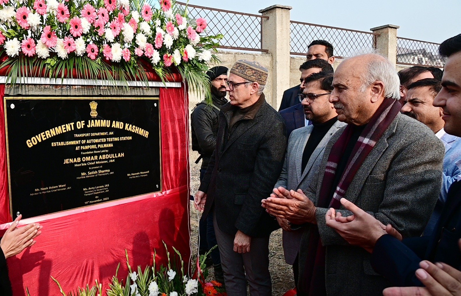 PAMPORE, NOVEMBER 19: Chief Minister Omar Abdullah today laid the foundation stone for the Automated Testing Station at Pampore, marking a significant step toward enhancing road safety and strengthening the transport infrastructure in Jammu and Kashmir.