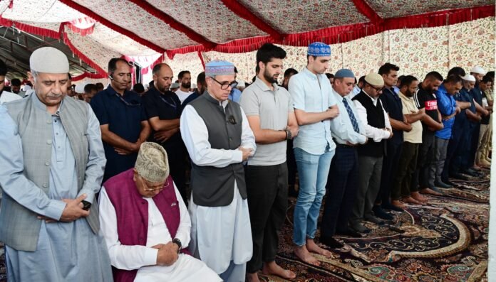 Srinagar, September 12: Chief Minister Omar Abdullah today joined thousands of devotees in offering Jumma (Friday) prayers at the revered Hazratbal Shrine on the occasion of the Friday following of Milad-un-Nabi (SAW).