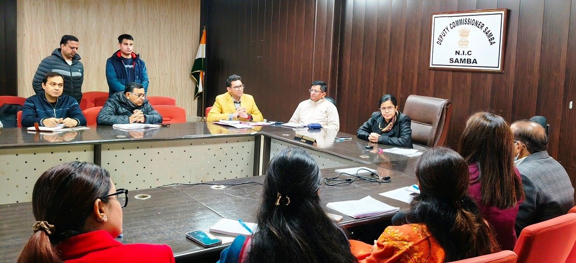 SAMBA, JANUARY 06: Deputy Commissioner Samba, Ayushi Sudan today convened a meeting to review the implementation and progress of the Pradhan Mantri Shram Yogi Maandhan (PM-SYM) scheme in the district.