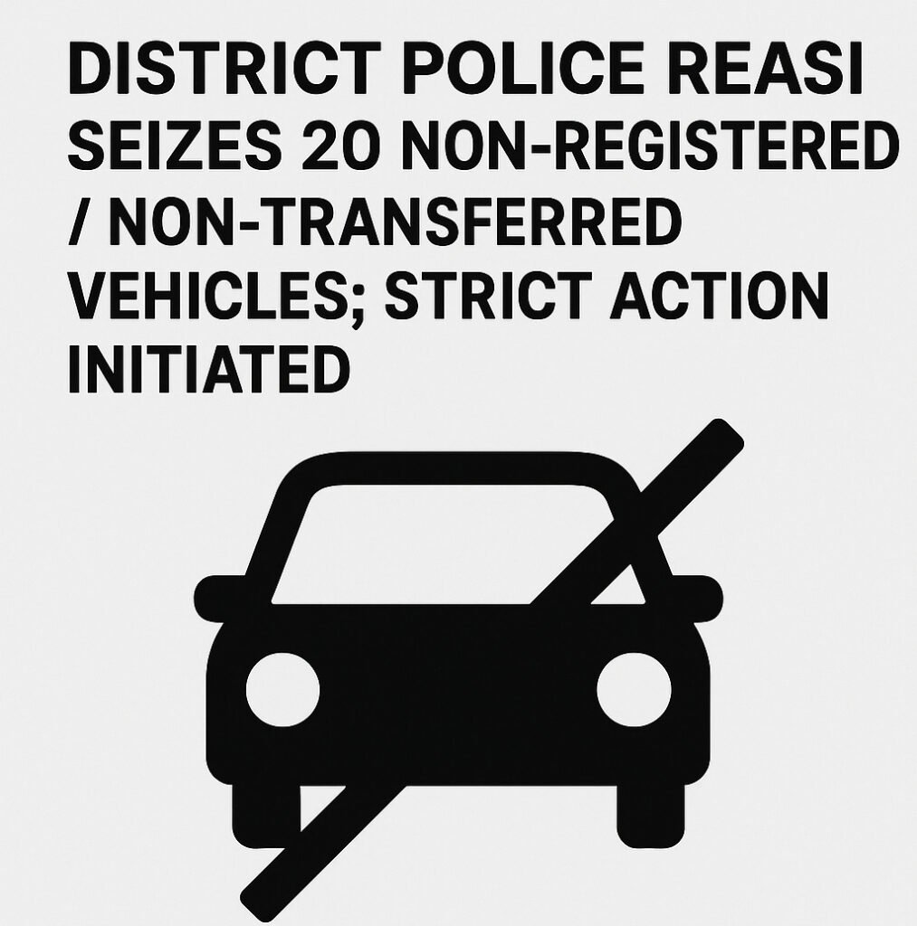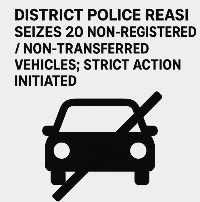 Reasi, December 11, 2025: District Police Reasi, continuing its drive to ensure traffic discipline and enforce motor vehicle regulations, today seized 20 vehicles that were found plying in the district without proper transfer of ownership and without being registered in the name of the current users. These vehicles belonged to other States/UTs and had not been formally transferred as mandated under the Motor Vehicles Act.