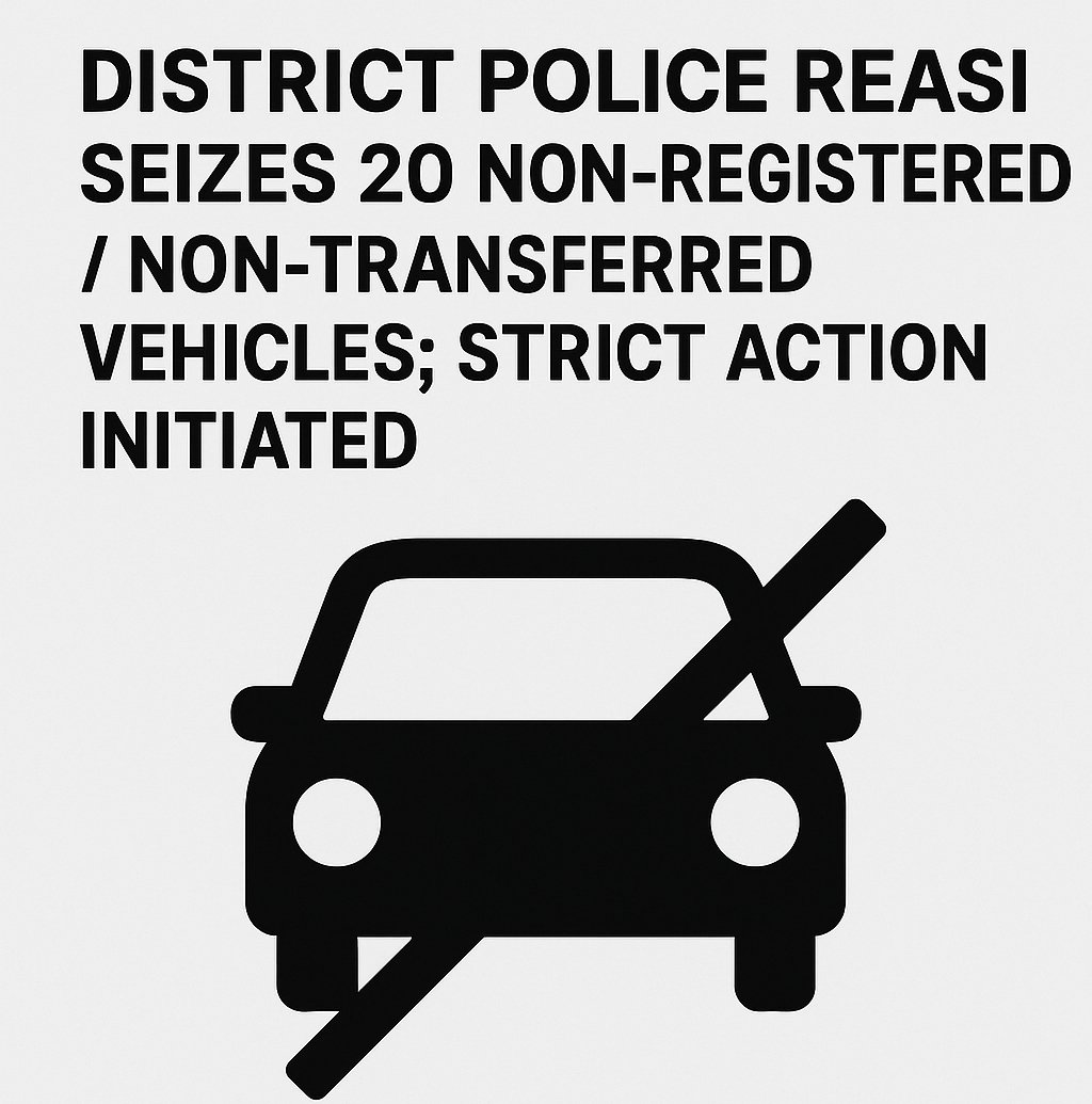 SSP Reasi has urged the public to avoid using unregistered or improperly transferred vehicles, emphasizing that such violations attract legal penalties. He further cautioned that strict action will continue against those found violating traffic laws, including seizure of vehicles and legal proceedings under relevant sections.
