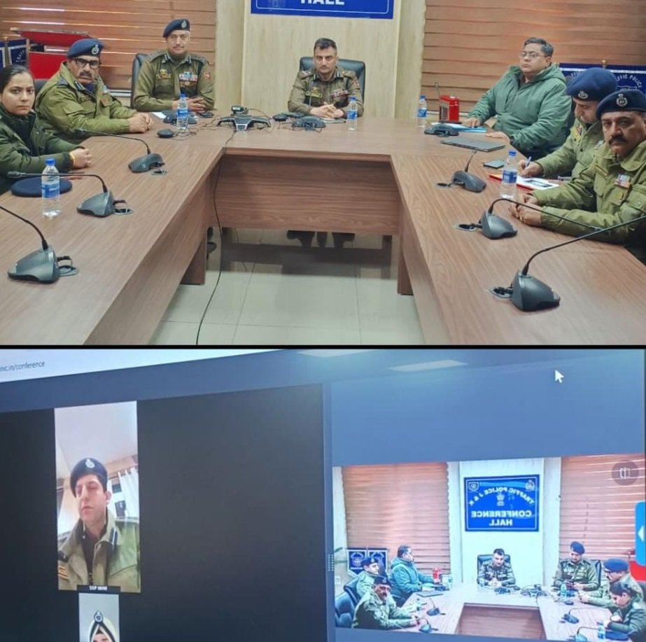 The meeting was attended by Dr. Mohd Haseeb Mughal, DIG Traffic Range Jammu; Ajaz Ahmed Bhat, SSP Traffic City Srinagar; S. Ravinder Paul Singh, SSP Traffic Rural Kashmir; Amit Bhasin, SSP Traffic City Jammu; Raja Adil Hamid, SSP Traffic NHW Raman; Farooq Qaiser, SSP Traffic Rural Jammu; Arvinder Singh Kotwal, SP Traffic City Jammu; Dr Sunniya Wani, Dy.SP Traffic City South Jammu and Ashwani Kumar, Dy.SP Traffic City North Jammu. Out stationed officers participated in meeting through Video Conferencing.