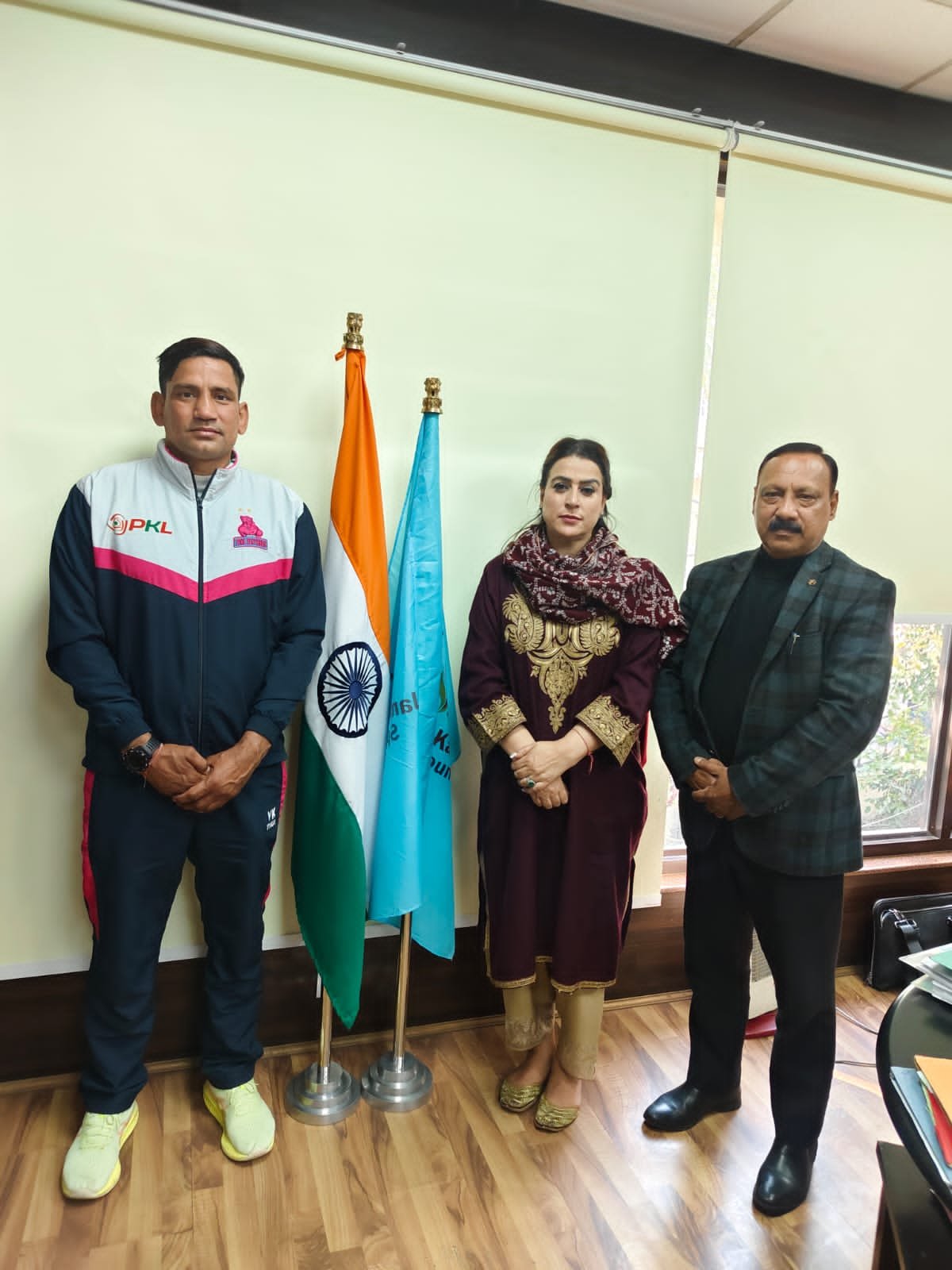 Dr Kuldeep Gupta, General Secretary, J&K Amateur Kabaddi Association, along with coach Vinod Kumar, called on the Secretary, J&K Sports Council, and discussed a comprehensive roadmap for kabaddi development in the UT. During the interaction, Vinod Kumar expressed satisfaction over the tremendous growth of sports infrastructure in Jammu & Kashmir, noting that improved facilities and institutional support have created a conducive environment for high-performance sports.
