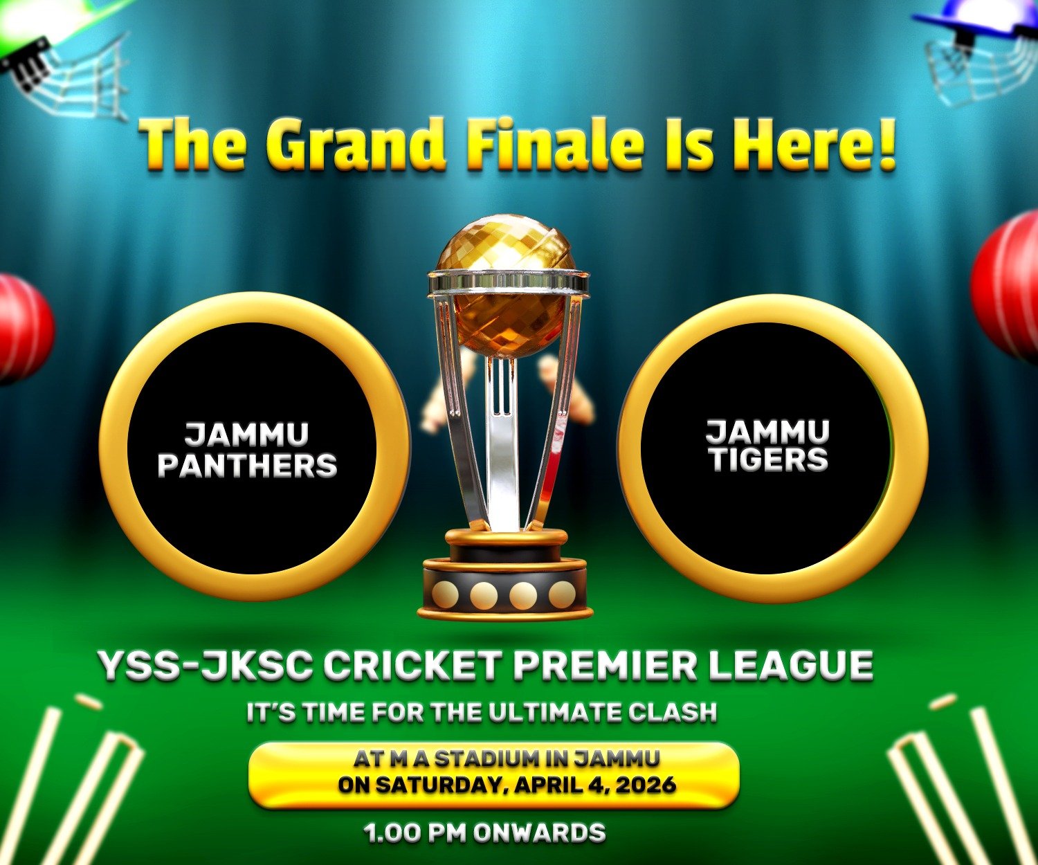 Join us for the Grand Finale of the YSS-JKSC Cricket Premier League Jammu as Jammu Panthers face Jammu Tigers.