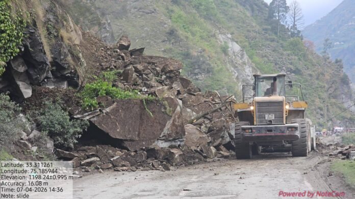 JAMMU, APRIL 07: Traffic on the Jammu-Srinagar National Highway (NH-44) has been suspended in both directions following a heavy landslide between Digdol and Khooni Nallah, officials said on Tuesday.