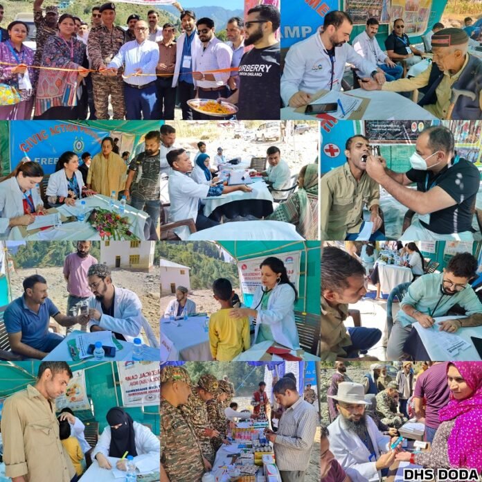 DODA, OCTOBER 04: On the directions of Deputy Commissioner Harvinder Singh and Director Health Services Jammu Dr. A. H. Zargar, and under the overall guidance of Chief Medical Officer Dr. Om Kumar, and ADC Bhaderwah Sunil Kumar Bhutyal, a Mega Multi-Speciality Health Camp was organized at Village Bheja in Medical Block Bhaderwah, today.