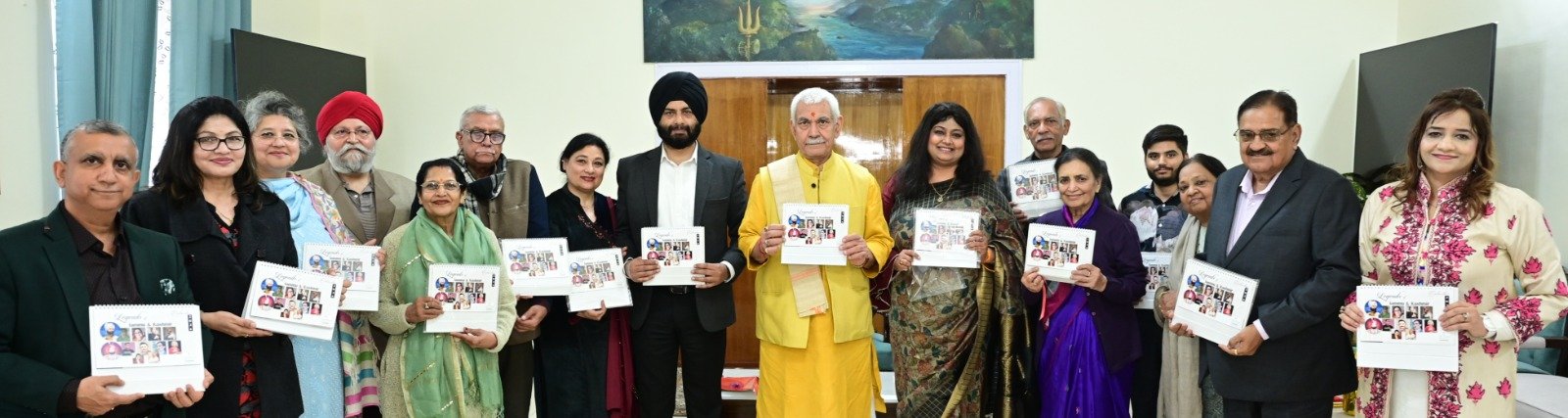JAMMU, FEBRUARY 19: Lieutenant Governor Shri Manoj Sinha today unveiled the Calendar dedicated to Legends of Jammu Kashmir, at Lok Bhavan. The Calendar was published by Slimline Clinic of Dietetics and Clinical Nutrition, Jammu.