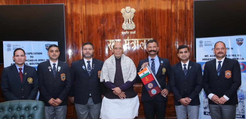 Raksha Mantri Shri Rajnath Singh today flagged-off a joint expedition to Mount Aconcagua in Argentina from South Block, New Delhi. The mountain at 6,961 metres stands as the highest peak of South America and the highest mountain outside Asia. The joint expedition is being undertaken by the Nehru Institute of Mountaineering, Uttarkashi and Jawahar Institute of Mountaineering & Winter Sports, Pahalgam.Extending his best wishes to the team, RM stated that scaling this formidable peak is not merely a test of physical endurance but a true examination of leadership, teamwork and mental resilience which define the finest mountaineers of India. 🇮🇳https://www.pib.gov.in/PressReleasePage.aspx?PRID=2223636®=3&lang=1