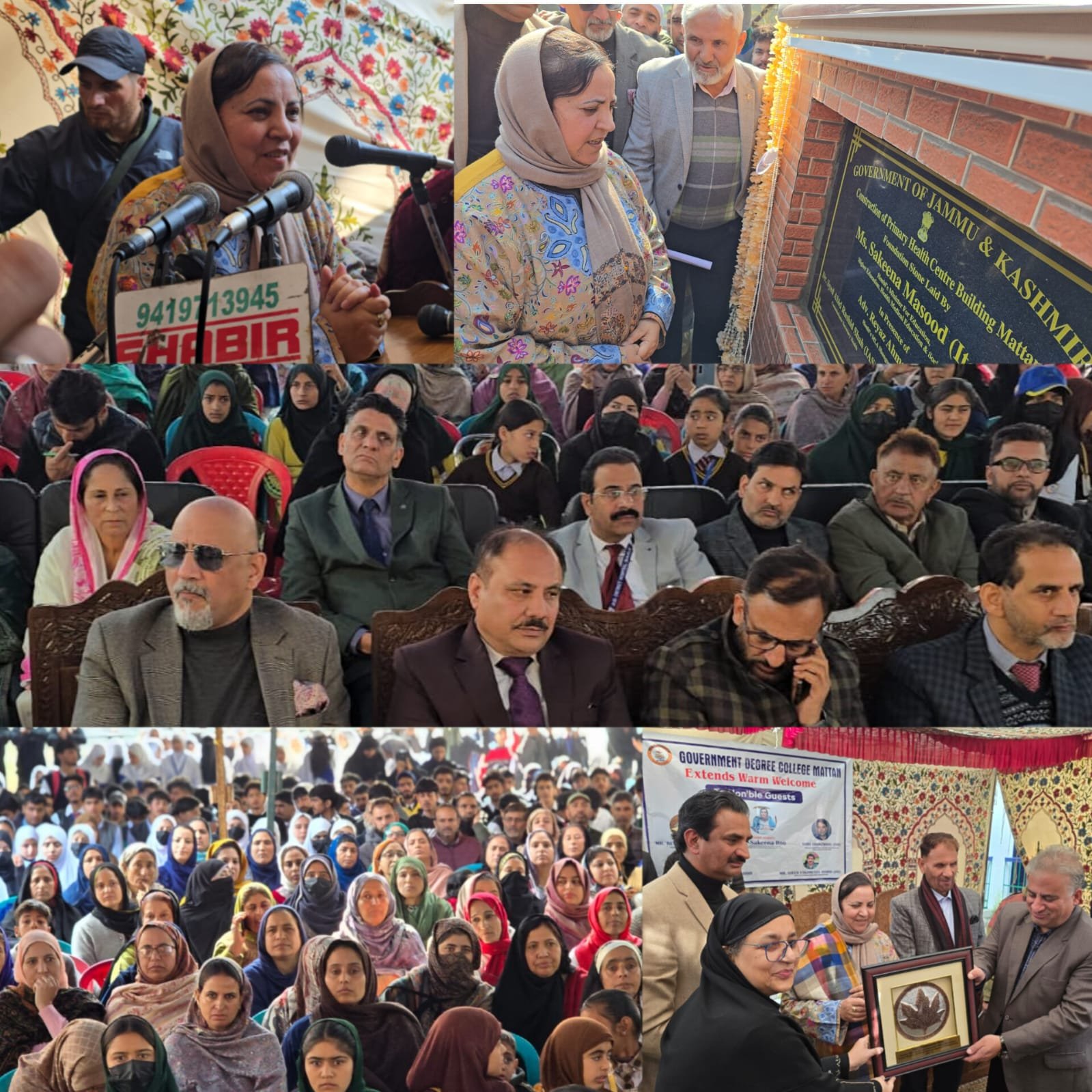 Addressing a mammoth gathering after laying foundation stone for college building, Minister Sakeena reaffirmed the government’s commitment to ensuring equitable development across all sectors, especially in rural and semi-urban regions. “Education and health form the backbone of a progressive society. Establishing a degree college and a full-fledged health centre in Mattan reflects our vision to empower the youth of this area and around it with quality learning opportunities as well as ensuring accessible healthcare for every citizen”, she stated.